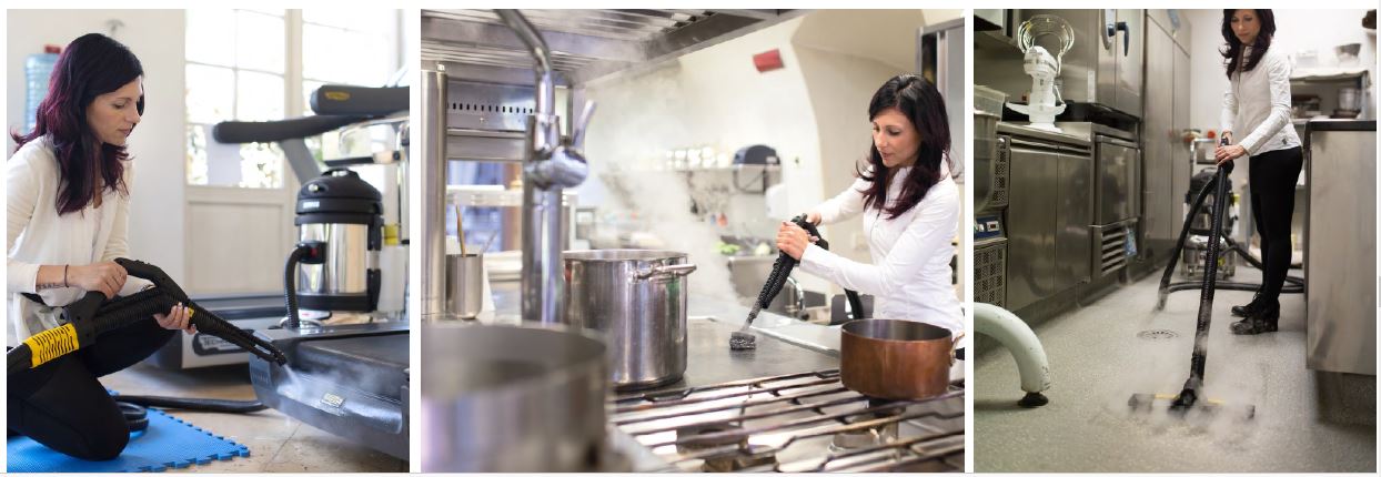 A les llars, el vapor es pot utilitzar per netejar i desinfectar banys, cuines i àrees de joc per a nens. És especialment útil per eliminar taques i olors de catifes i tapisseria.