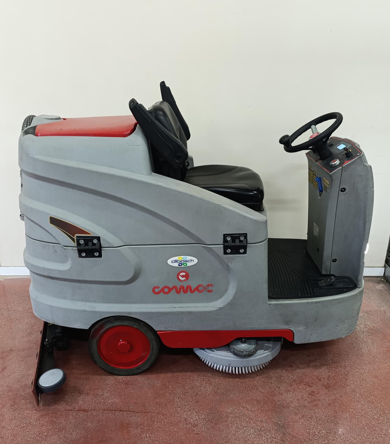 Fregadora Comac Innova 85B del año 2019 con 2.892 horas de uso. Baterías con dos meses de uso i cargador seminuevo.
