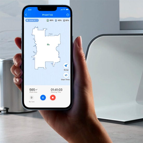 Tecnologia Zero Distància: Equipat amb un raspall lateral i sensors d’alta precisió, el Phantas pot realitzar una neteja d’extrema proximitat a les vores, sense deixar cap espai sense cobrir (0 cm de distància).